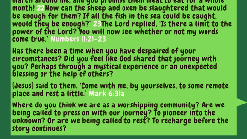 Many of us have discovered the joy of a shared walk with others over the course of the pandemic so we have created this resource to inspire a conversation based on the Sunday service. Why not save this onto you phone, or pick up a paper copy on a Sunday, and take it with you.
