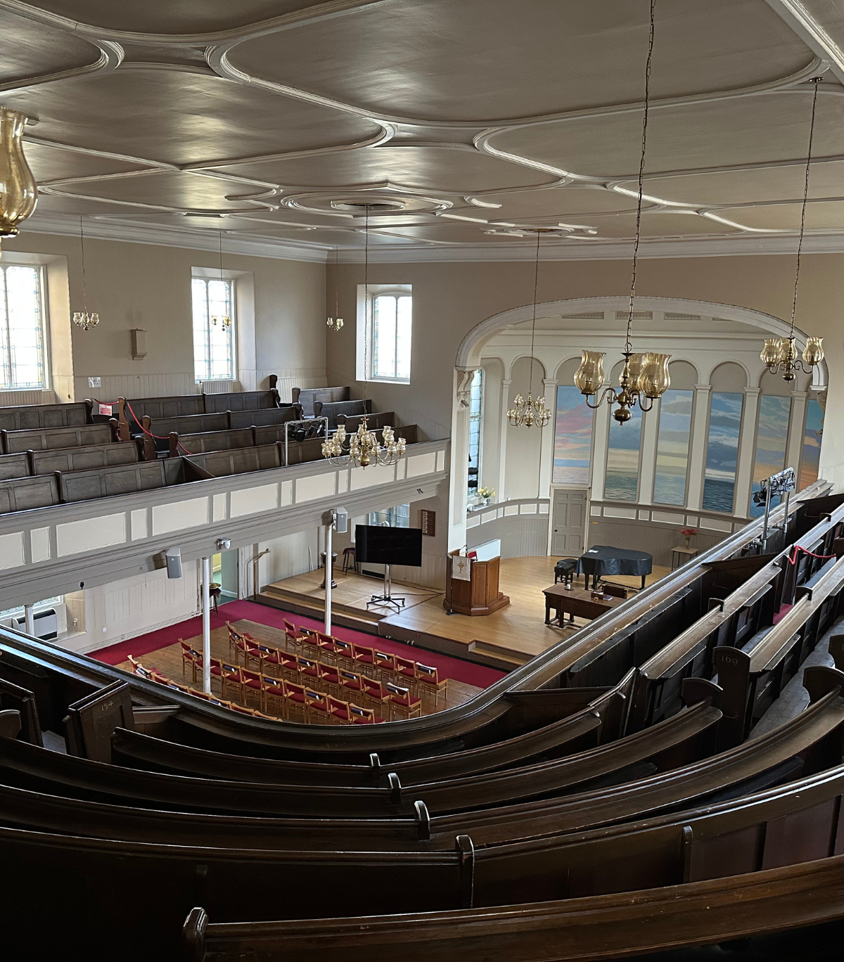 Our Auditorium (also known as the Church Hall) is our main space - it sits 250 in the main space, with additional seating for 50 in the undergallery and a further 50 seats on the balcony.