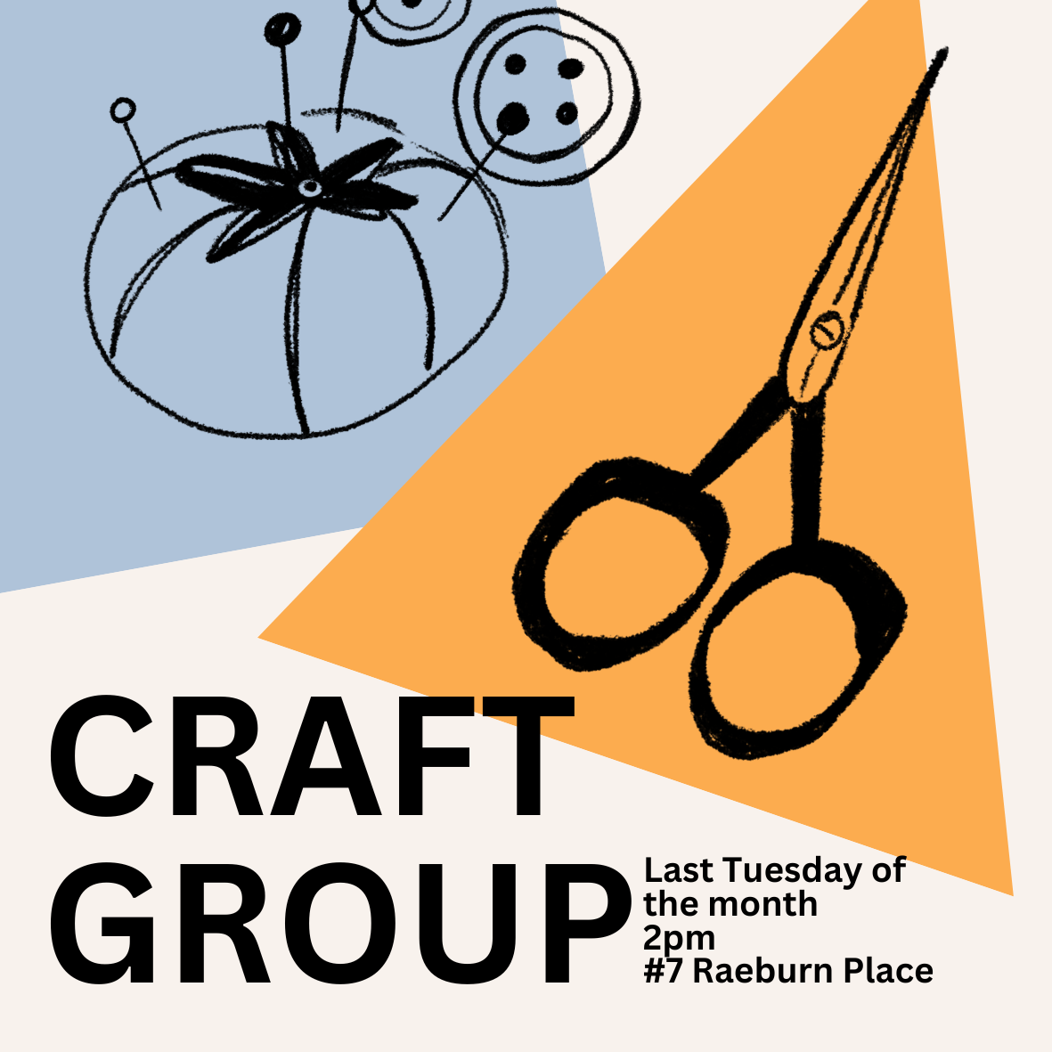 - A monthly craft group where you can knit and knatter, sew and sip, and otherwise make good progress on that craft project in even better company